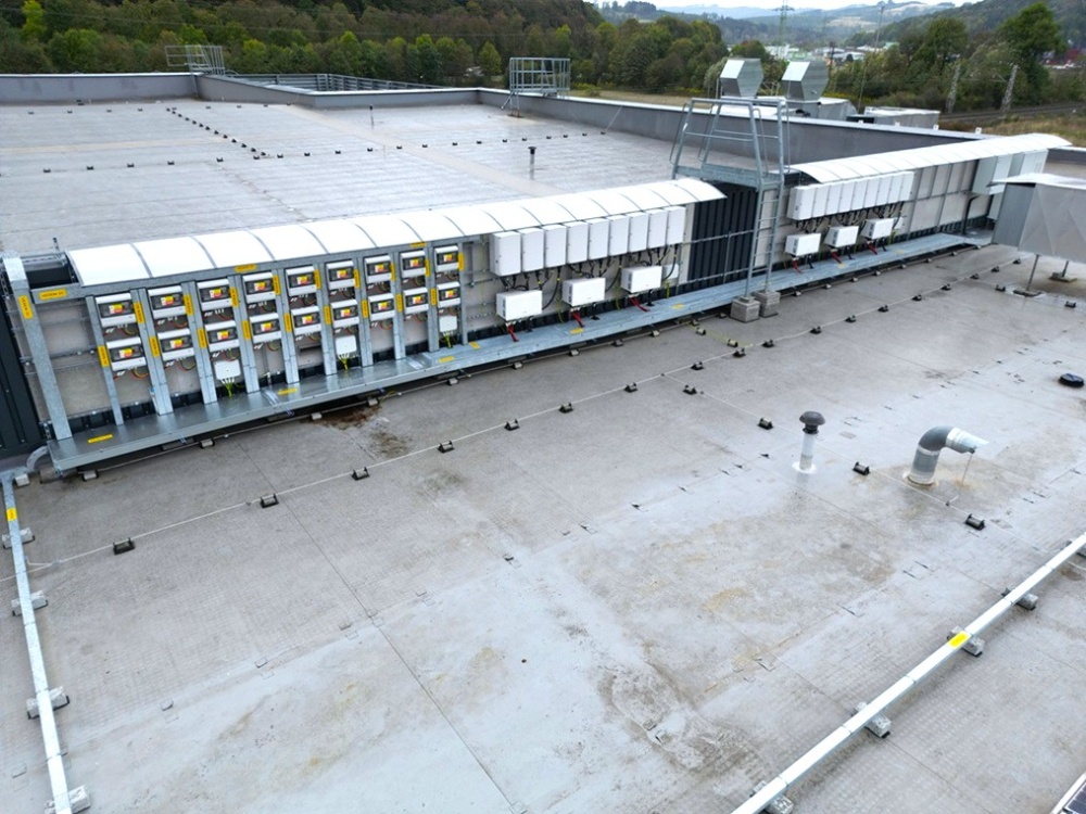 Hlavní výzvou byla členitá víceúrovňová střecha protkaná světlíky a hromosvodem FeZn, kde jsme museli zajistit rovnoměrné rozložení zátěže a zároveň dosáhnout výkonu přes 800 kWp.