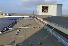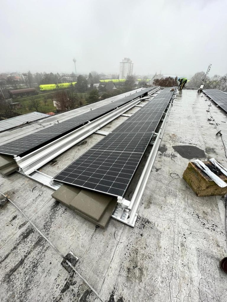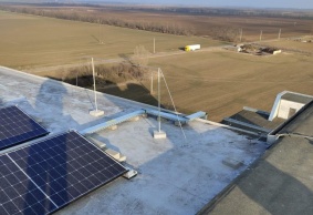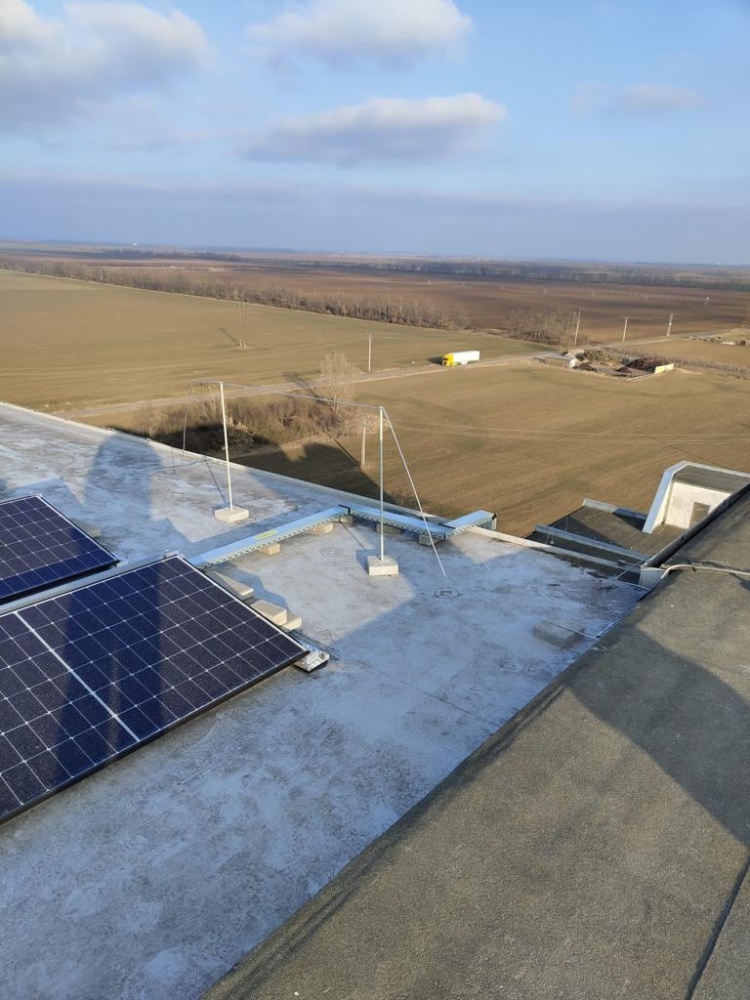 • Místo realizace FVE : Hodonice. Výkon 445 kWp, celkový počet střech 10, celkem 957 ks panelů JinkoSolar 465Wp, měniče a optimizéry Huawei, konstrukce Novotegra samozátěž s kotvením - JIH,  realizace byla provedena vč. úpravy na hromosvodové jímací soustavě, dle požadavků klienta.