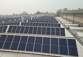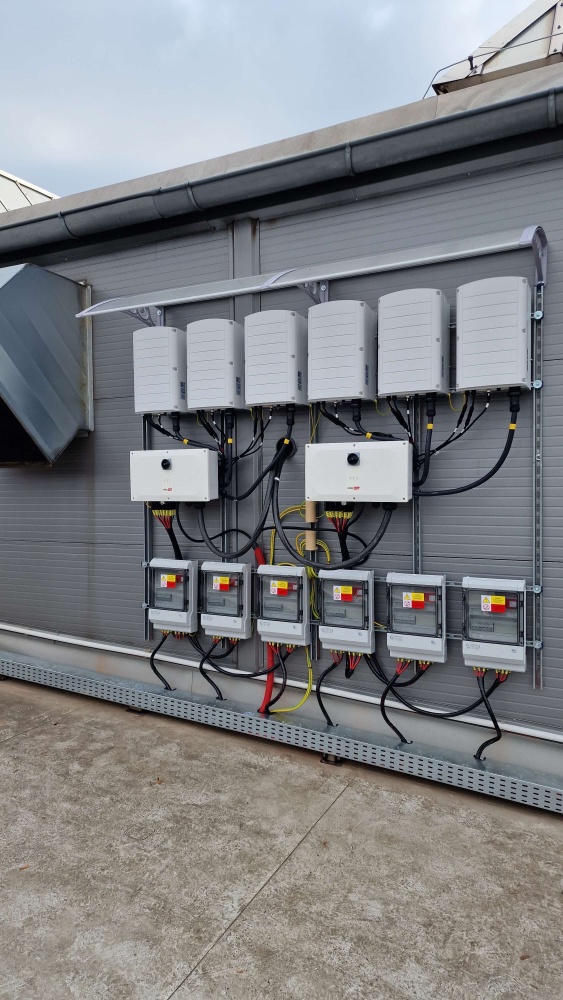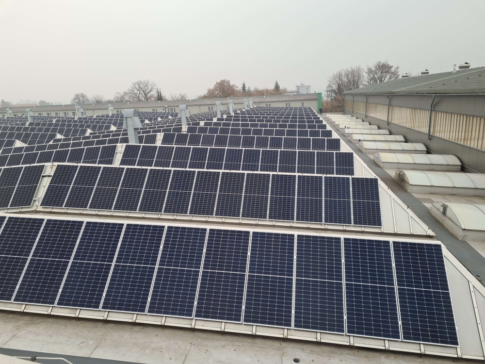 Fotovoltaický systém o celkovém výkonu 450 kWp je instalován na speciálmí konstrukci, uchycené k rámům světlíků. Každý panel je osazen výkonovým optimizérem, což umožňuje výrobně pracovat při nejvyšší možné efektivitě.