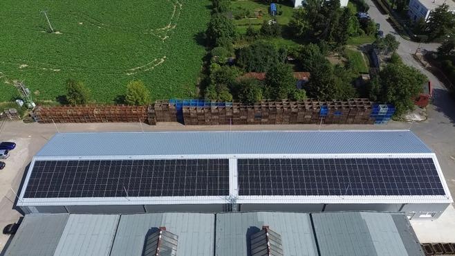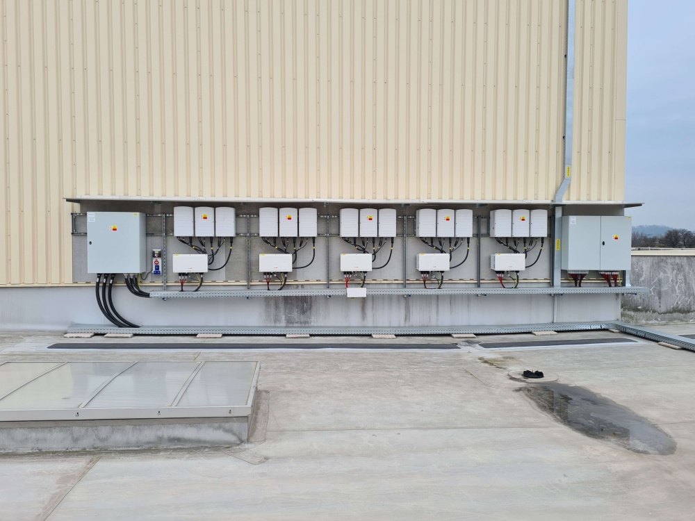 • Fotovoltaická elektrána o celkovém výkonu 544 kWp je instalována na střeše centrálního skladu provozovatele obchodního řetězce. Panely jsou instalovány na samozátěžové konstrukci s orientací východ - západ.