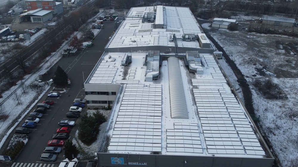 • Instalovaný fotovoltaický systém na dvou objektech investora. Objekt Poříčany je elektrárna na střeše objektu tvořena celkem 1384 ks fotovoltaických panelů, o výkonu 460 Wp, celkový instalovaný výkon fotovoltaického systému činí 636,64 kWp , na roznášecí konstrukci. Objekt Mimoň je elektrárna na střeše objektu tvořena celkem 896 ks fotovoltaických panelů, o výkonu 460 Wp, celkový instalovaný výkon fotovoltaického systému činí 412,16 kWp, panely jsou instalovány na dvou střechách.