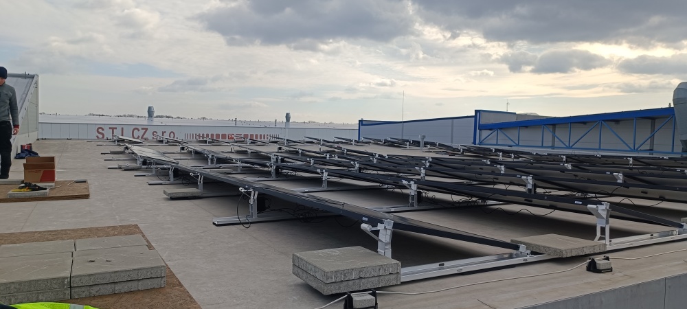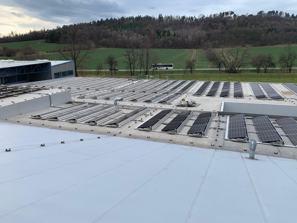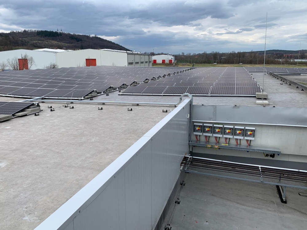 • Místo realizace FVE : Krnov. Výkon 218 kWp, kapacita bateriového systému 216 kWh, celkový počet střech - 1, celkový počet panelů AEG  455 Wp - 480 ks, měniče a optimizéry SolarEdge,  konstrukce  Novotegra samozátě  - jih. projekt vč. úpravy jimací hromosvodové soustavy, s výstavbou nového techgnologického kontejneru k umístění technologie (bateriový systém, měniče). Součástí projektu je rovněž stavební část - výkop, pokládka chrániček a kabeláže k technologikcému kontejneru, vč. výstavby uložení kontejneru.