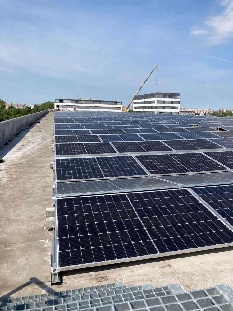 • S ohledem na stále se zvyšující ceny elektrické energie byl vznesen poždavavek na návrh fotovoltaického systému. FVE byla navržena na dvou střešních rovinách, které byly doposud nevyužity. Vzhledem k způsobu provozu areálu byl doplněn bateriový systém, sloužící ke stabilizaci sítě investora.