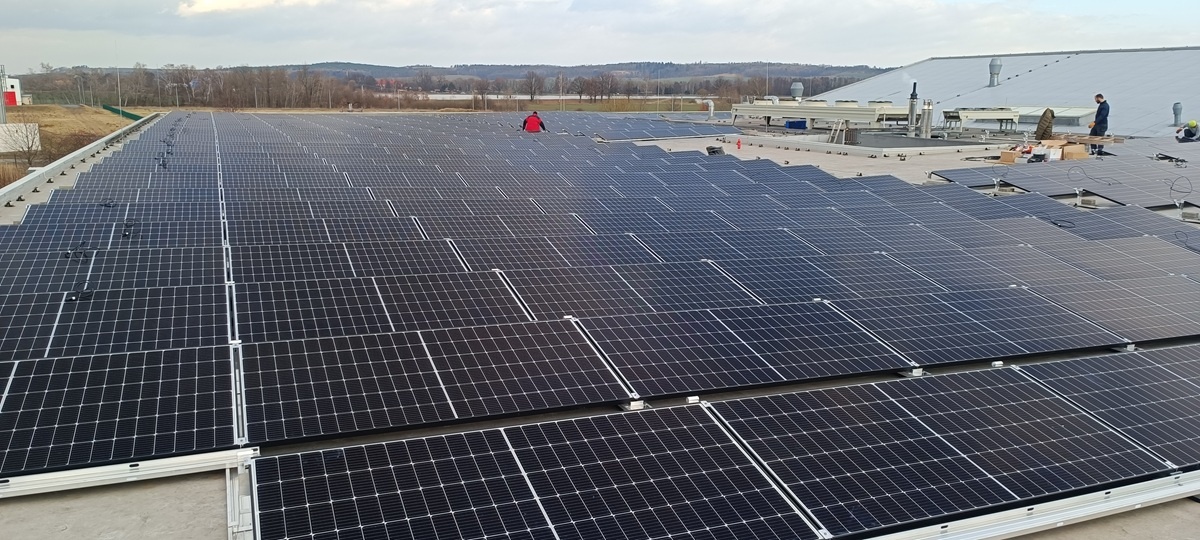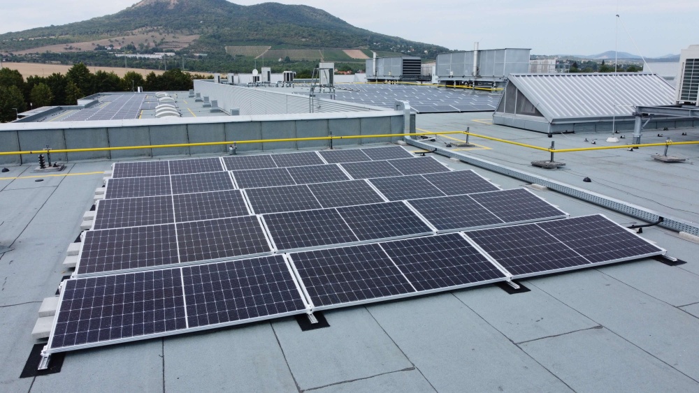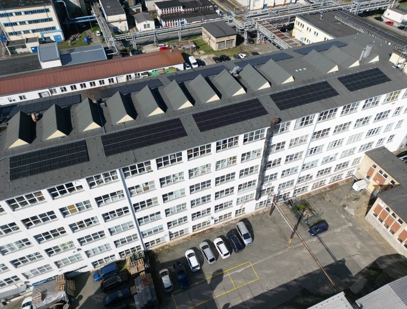 • Fotovoltaický systém je instalován na plochých střechách výrobních a skladovacích hal. Panely jsou umístěny na speciální samonosné konstrukci se zátěžovými betonovými prvky s orientací na jih. Bylo použito 13 ks střídačů zn. SOLAR EDGE o výkonu 100KW každý, a fotovoltaické panely o výkonu 450Wp v celkovém počtu 3736ks. Špičkový  výkon celého FV systému představuje 1681,2kWp a činí z něj jednu z největších střešních instalací v ČR.
