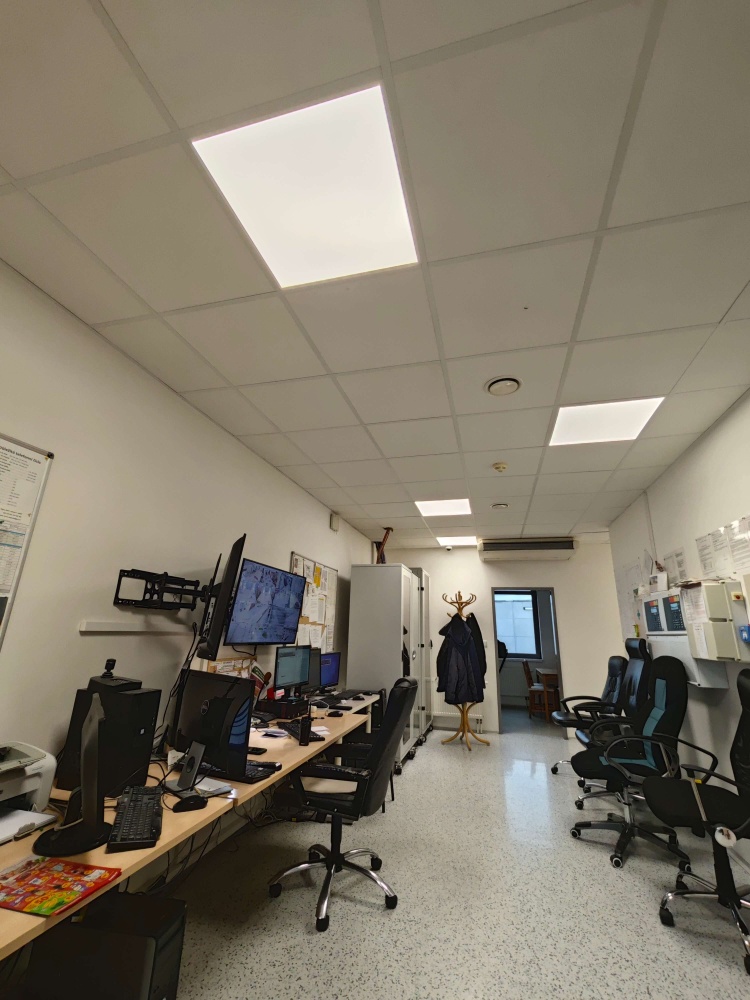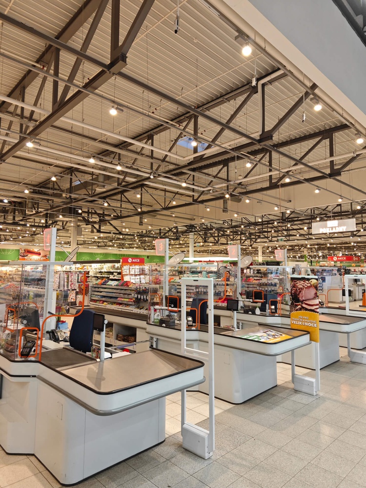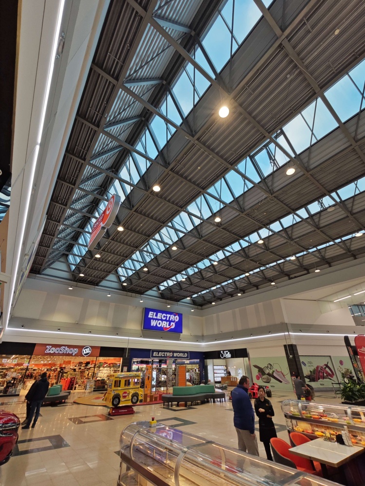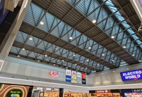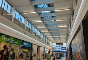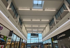 • Místo instalace - zázemí a pasáž nákupního centra. Použité osvětlení - LINEAR E120 30W-840, ORBIT 31 120W-840-60D, BUBU 32 100W-740-BAT, FLAT 0606 36W-840-120D, FLAT E 1203 36W-840-120D