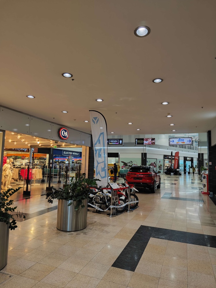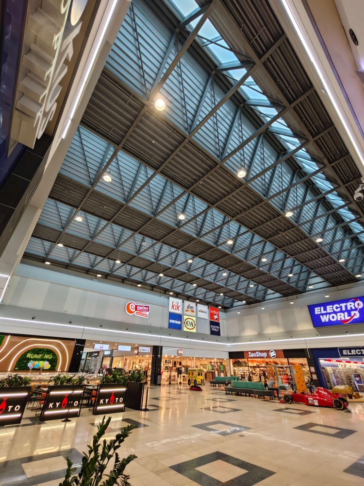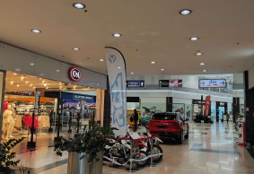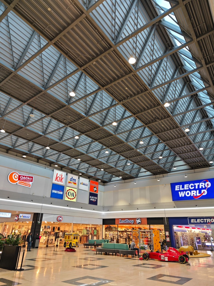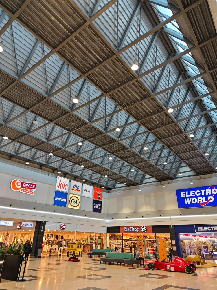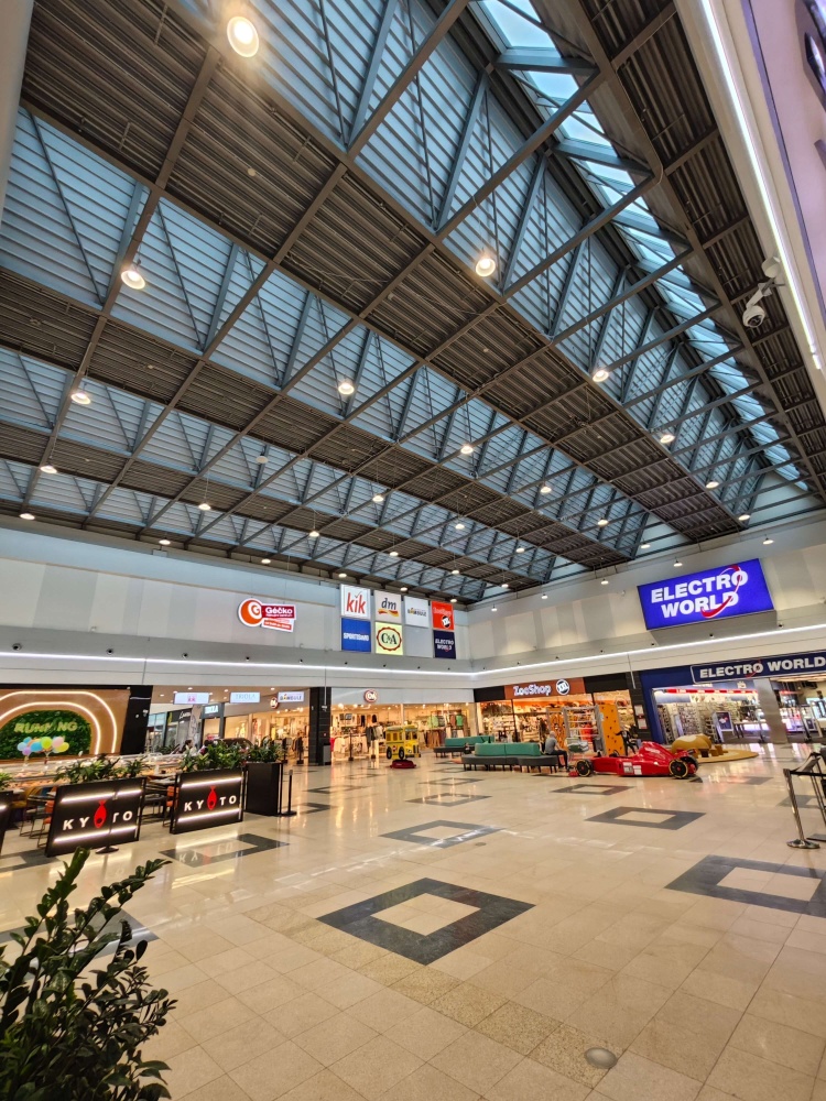 • Požadavkem investora byla jednoznačná úspora nákladů na osvětlení nákupního centra v pasážích a zázemí. Byl vytvořen projekt osvětlení včetně světelně technických výpočtů. Na základě toho proběhla kompletní výměna starého osětlení za nové moderní led úsporné osvětlení. Součástí toho bylo také nahrazení venkovního osvětlení a to pomocí úsporného led osvětlení BUBU.