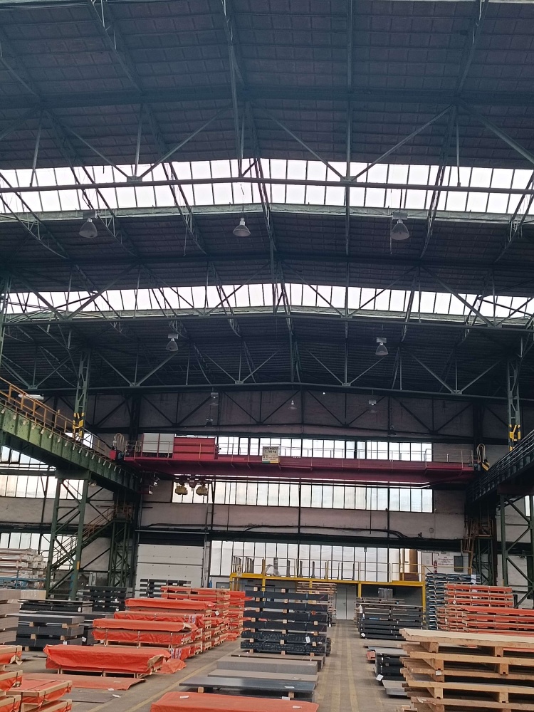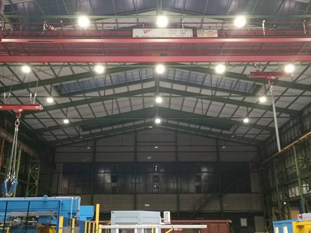 Místo instalace - skaldovací a výrobní haly. Použité osvětlení - ORBIT 31 150W-840-60D, ORBIT 31 200W-840-60D, EOS 50 120W-840-90D, EOS 53 150W-840-60D, EOS 53 180W-840-60D, EOS HOOD 36 360W-840-60D,