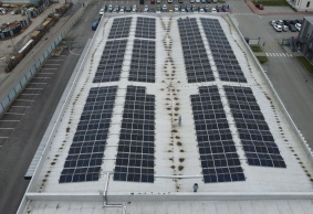 Instalovaný fotovoltaický systém v Českých Budějovicích je tvořený 39 poli fotovoltaických panelů, umístěných na střechách stávajících objektů hal investora. Celkový výkon FVE činí 978,26 kWp je určený pro výrobu el. energie pro vlastní spotřebu. Použito bylo celkem 2386 ks FVP o výkonu 410 Wp.