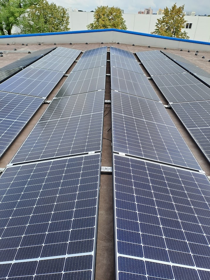 Instalace nové FVE o celkovém instalovaném výkonu 987,8 kWp. Fotovoltaická soustava (FVS) se skládá z 2171 ks monokrystalických fotovoltaických panelů s jmenovitým výkonem 455 Wp, 8 ks FV střídačů s jmenovitým výkonem 100 kW, DC a AC rozvaděčů. Výkon z FVS je vyveden do stávající elektroinstalace objektu. Celá technologie FVS je umístěná v rozvodně NN.