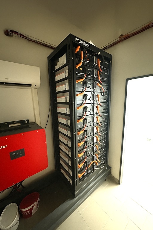 Systém je řízen jedním střídačem SolarEdge a doplněn o bateriové úložiště o kapacitě 104,19 kWh, které zajišťuje efektivní využití vyrobené energie.