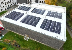 Na střeše základní školy v Hradci nad Moravicí jsme instalovali fotovoltaickou elektrárnu o výkonu 99,36 kWp. Na samonosnou hliníkovou konstrukci bylo: