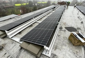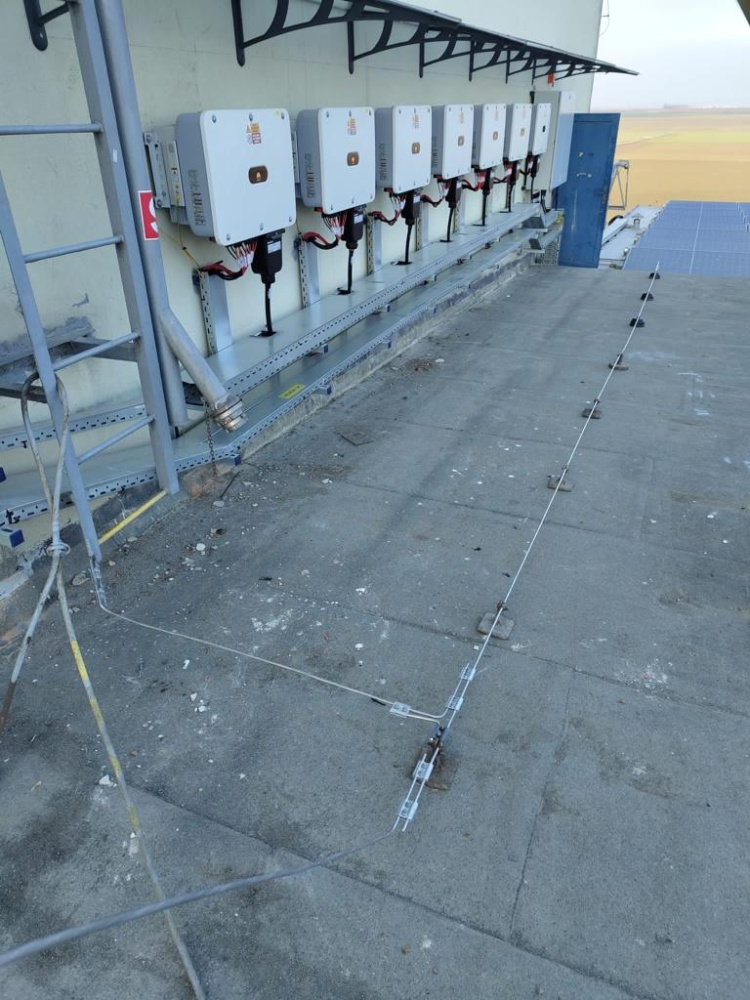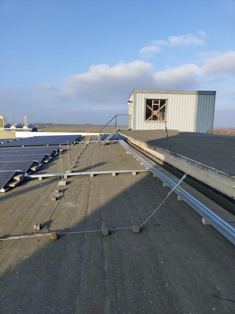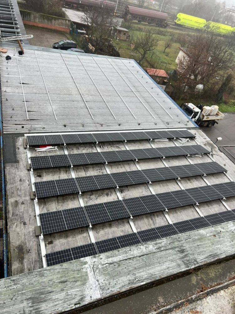 • Místo realizace FVE : Hodonice. Výkon 445 kWp, celkový počet střech 10, celkem 957 ks panelů JinkoSolar 465Wp, měniče a optimizéry Huawei, konstrukce Novotegra samozátěž s kotvením - JIH,  realizace byla provedena vč. úpravy na hromosvodové jímací soustavě, dle požadavků klienta.