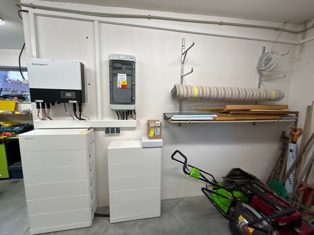 • Klient již měl fovotovoltaickou elektrárnu na svém rodinném domě, ale požadavkem bylo jít přes mikrozdroj a instalovat novou elektrárnu 9,555kWp, který udělal v celkové součtu 14,555 kWp s doplněním velkého bateriového úložiště 25,6 kWh. Klient z důvodu výpadku elektrické sítě chtěl mít jistotu, že může být soběstačný. V neposlední řadě byla instalována i auto nabíječka Growatt-Thor pro svůj elektromobil.