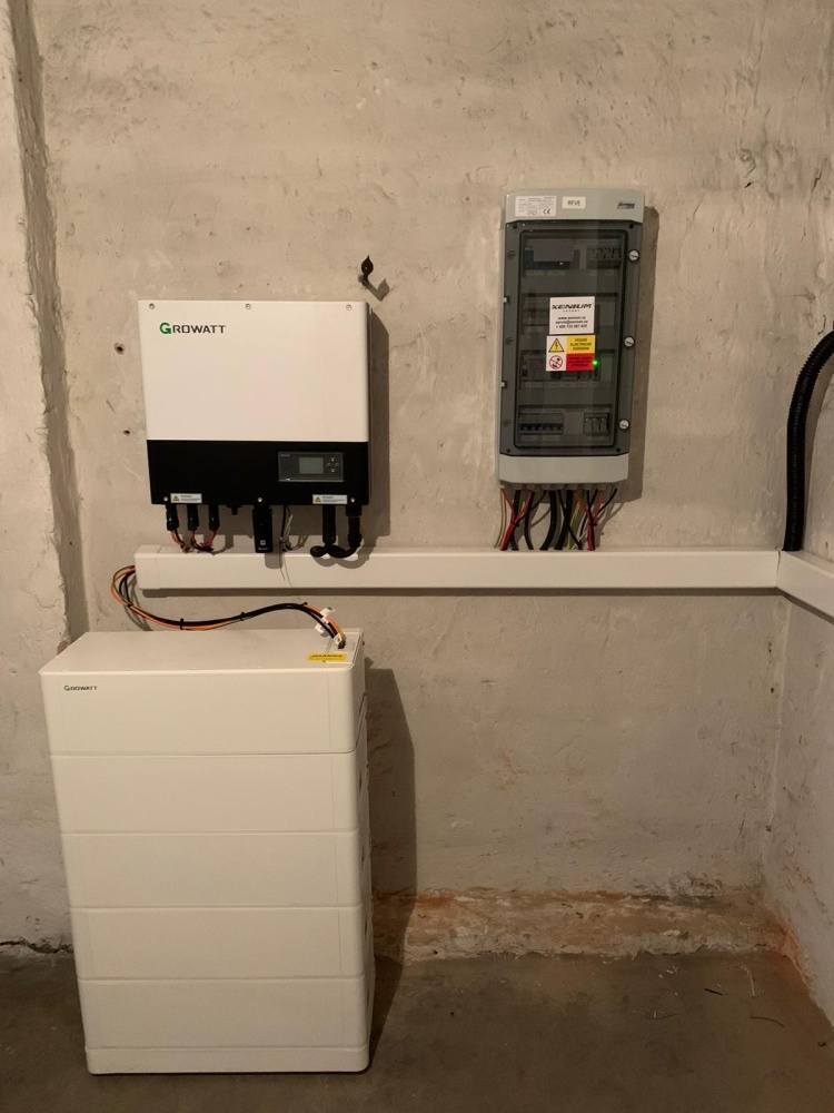 • Výkon FVE 9,56 kWp, baterie 10,24 kWh, střídač GROWATT SPH10000TL3, FV panely -21 ks Ja SOLAR 455 Wp, optimizéry TIGO, autonabíječka THOR 22AS-P