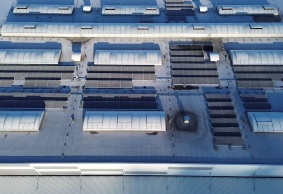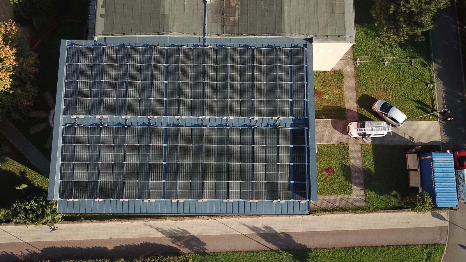 • Elektrárna byla tvořena celkem 217 ks fotovoltaických panelů, o výkonu 460 Wp, celkový instalovaný výkon fotovoltaického systému činí 99,82 kWp. FV panely jsou připevněny k samonosné konstrukci se sklonem 13°. Konstrukce na střeše je provedena s ohledem na zajištění mechanické stability zejména proti působení větru. Na střeše je 87 ks panelů, které jsou orientovány na jihozápad. Zbylých 130 panelů jsou orientovány na jihovýchod.