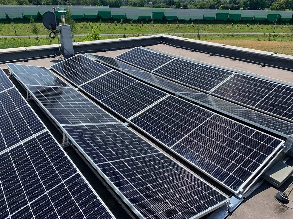 • Využití 2 světových stran šikmé plechové střechy s orientací VÝCHOD-ZÁPAD, hromosvod řešen vodičem HVI