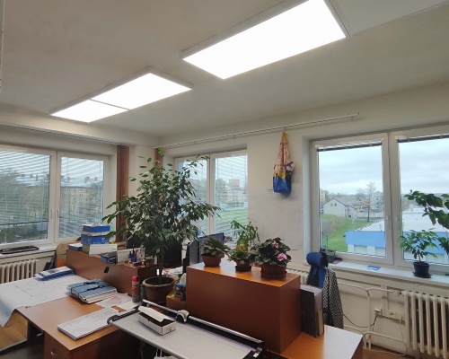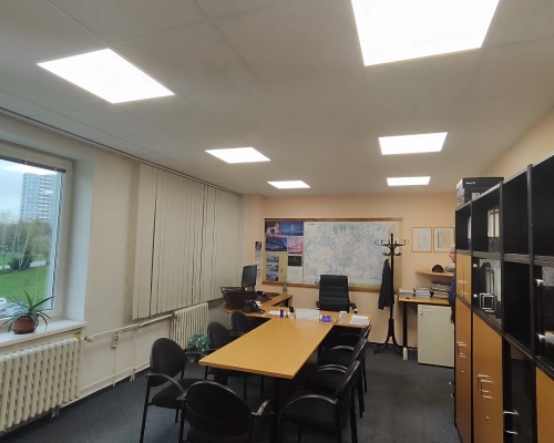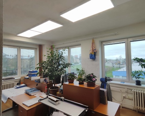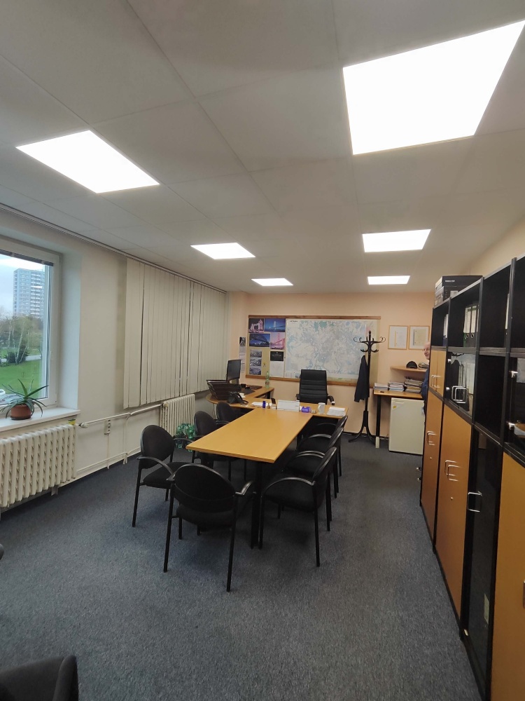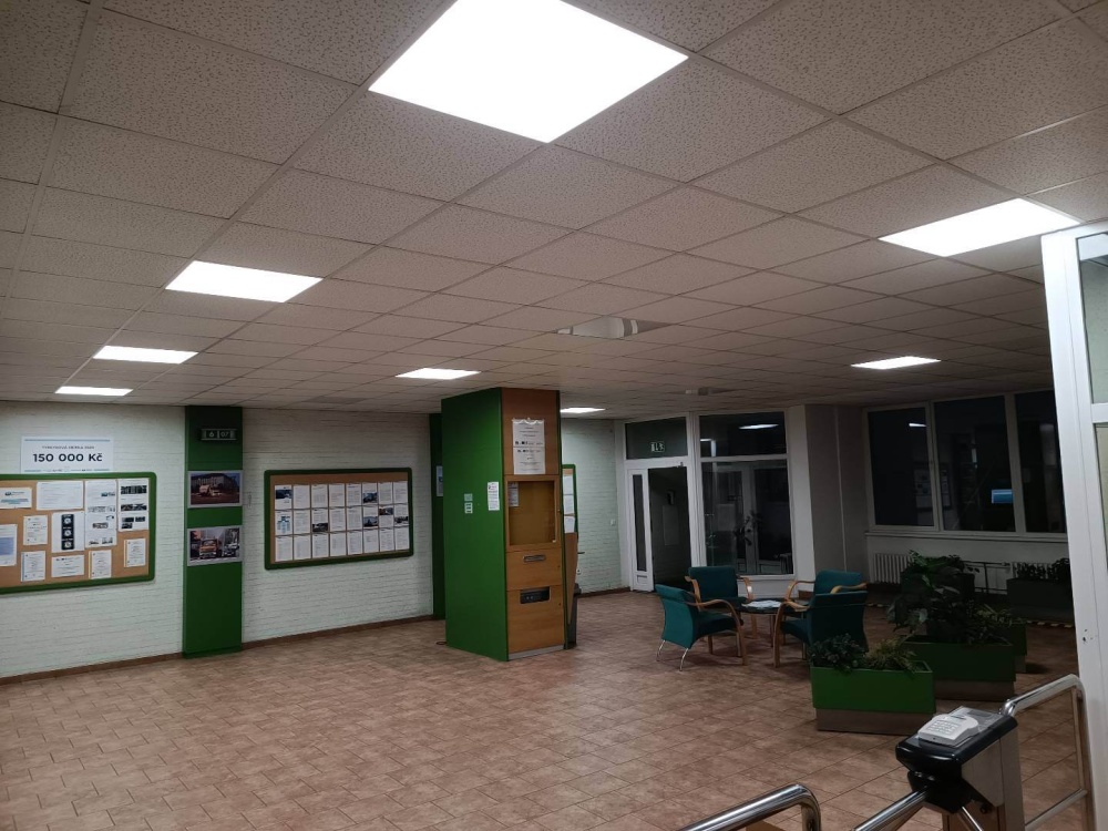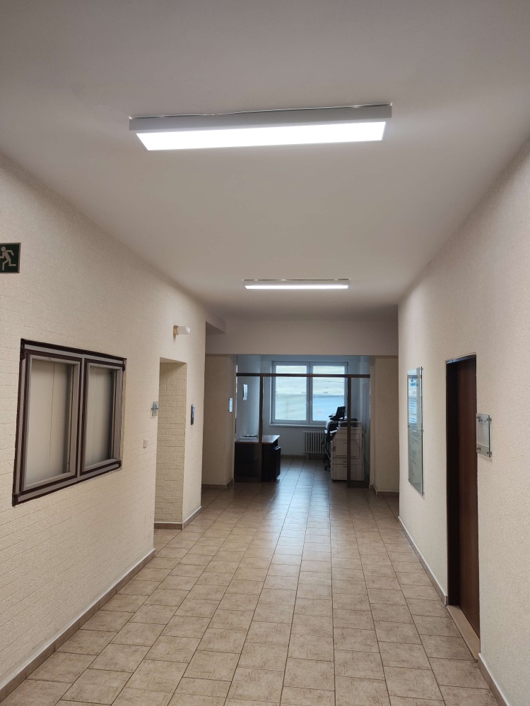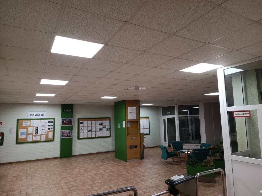 • Zadáním investora bylo výměny starého osvětlení za nové moderní úsporné led osvětlení, které zvýší zrakovou pohodu jednotlivých pracovišt v administrativní budově.
