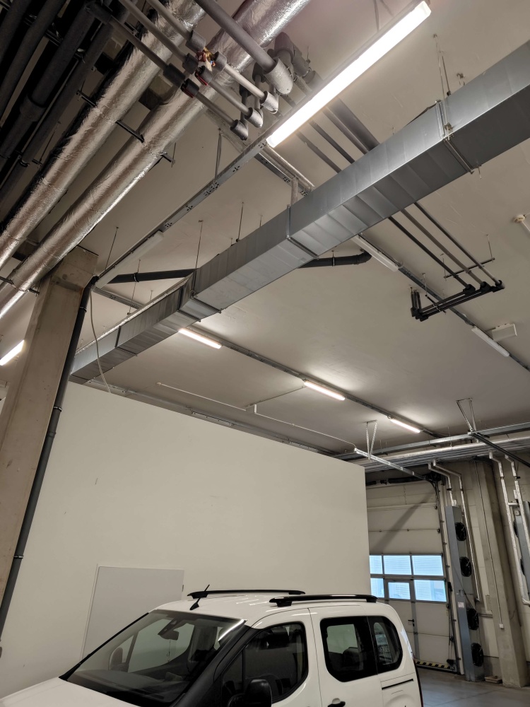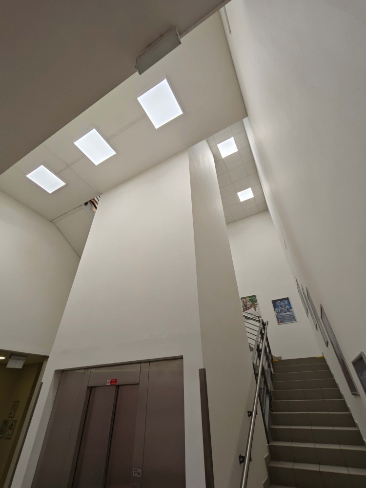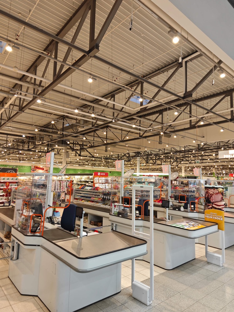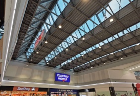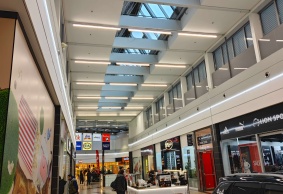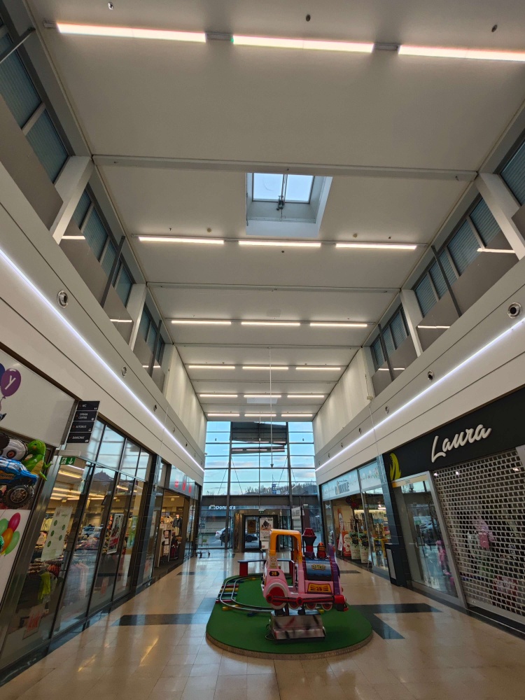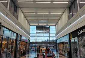 • Místo instalace - zázemí a pasáž nákupního centra. Použité osvětlení - LINEAR E120 30W-840, ORBIT 31 120W-840-60D, BUBU 32 100W-740-BAT, FLAT 0606 36W-840-120D, FLAT E 1203 36W-840-120D