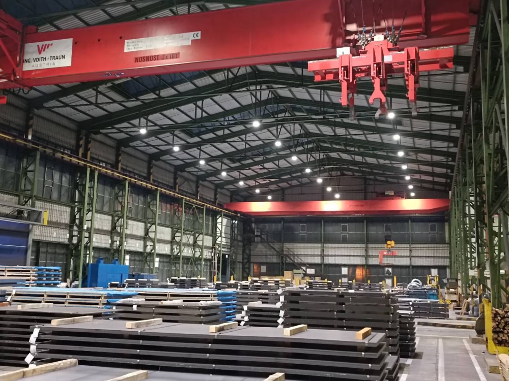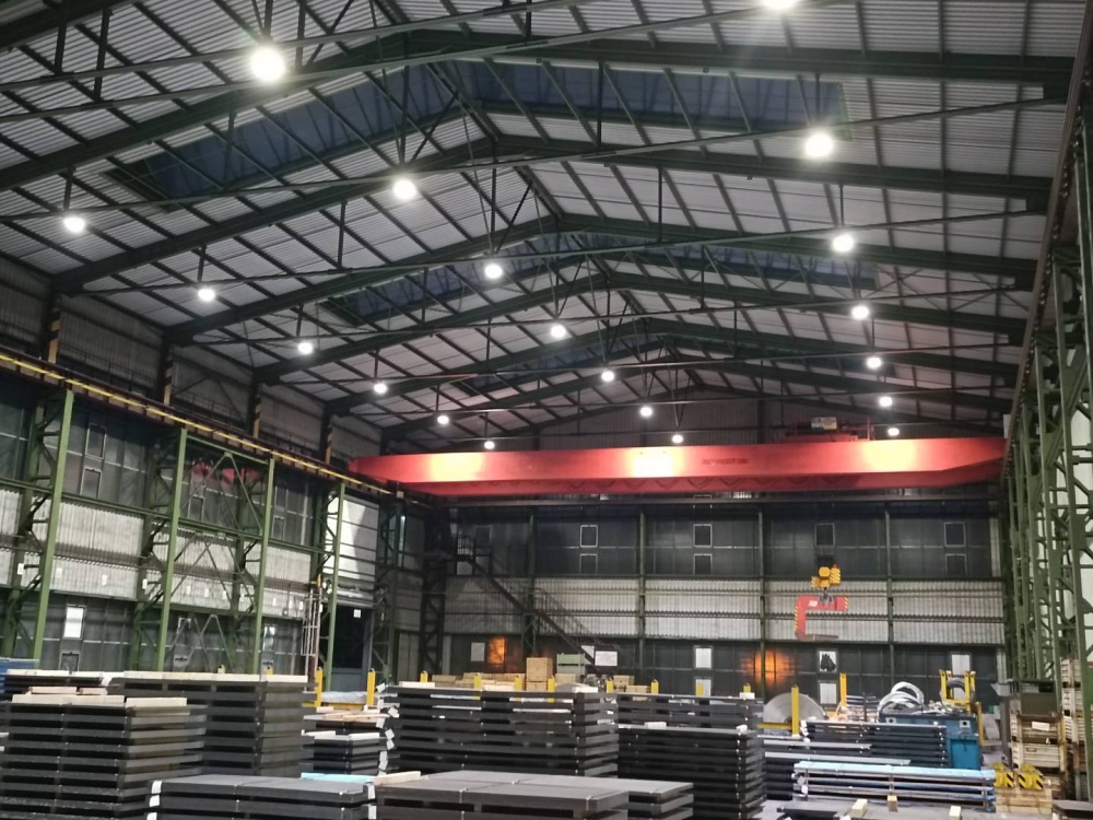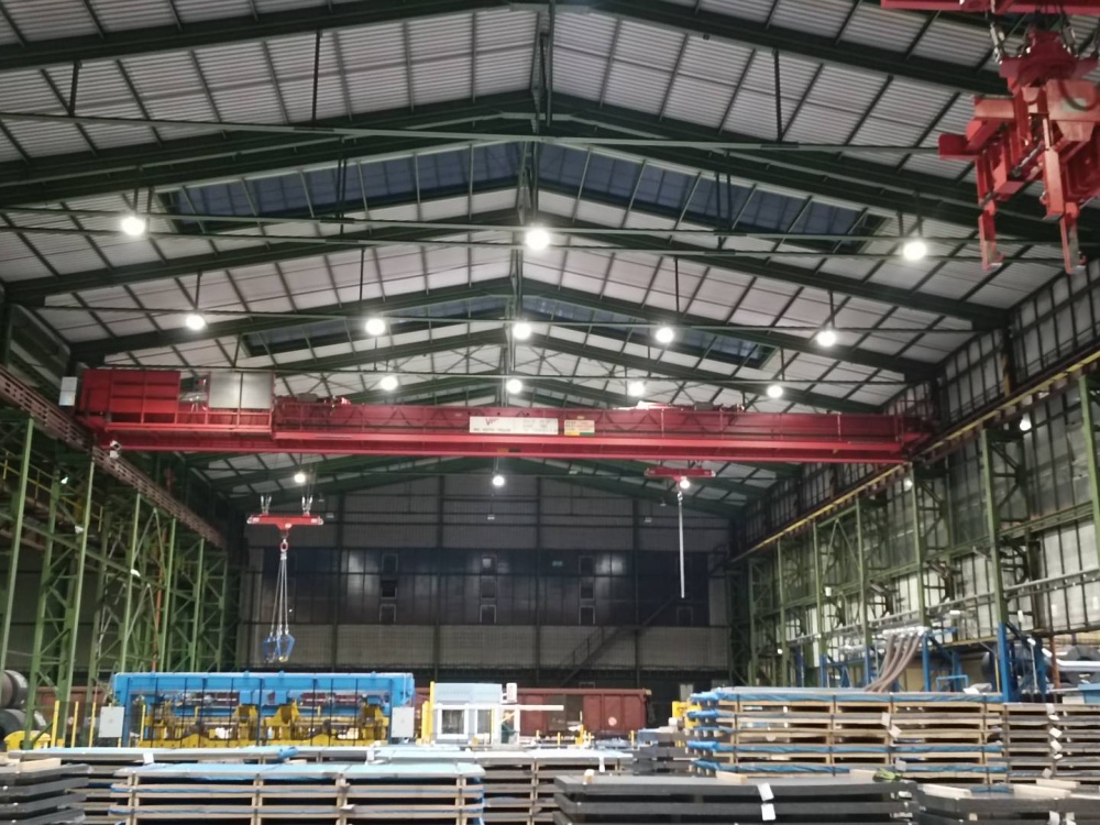 Místo instalace - skaldovací a výrobní haly. Použité osvětlení - ORBIT 31 150W-840-60D, ORBIT 31 200W-840-60D, EOS 50 120W-840-90D, EOS 53 150W-840-60D, EOS 53 180W-840-60D, EOS HOOD 36 360W-840-60D,