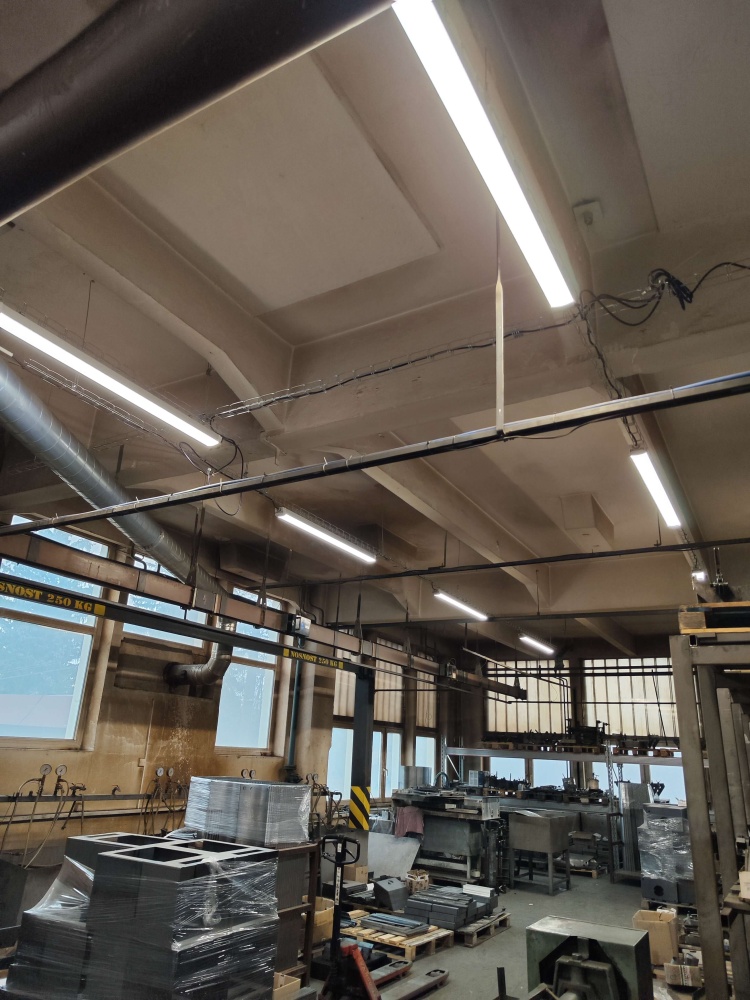 • V rámci realizavce usporného projektu podpořeného dotací, došlo k výměně starého chátrajícího osvětlení za nové moderní led osvětlení, které splňuje veškeré nové normy pro osvětlování pracovišť. Jednalo se o administrativní, skladovací a část výrobní prostory.  Realizace zakázky trvala 3 měcíce. Součastně s výměnou osvětlovacích soustav docházelo také k výměně veškeré kabeláže a modernizaci všech světelných rozvaděčů.